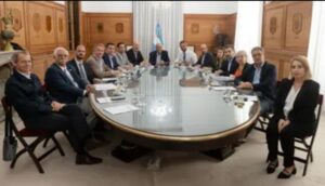 En el encuentro, que se realizó en el Salón de los Escudos de Casa Rosada, participaron el vicejefe de Gabinete Ejecutivo, José Rolandi; el presidente de la Cámara de Diputados, Martín Menem; y el secretario de Transformación del Estado y Función Pública, Maximiliano Fariña.