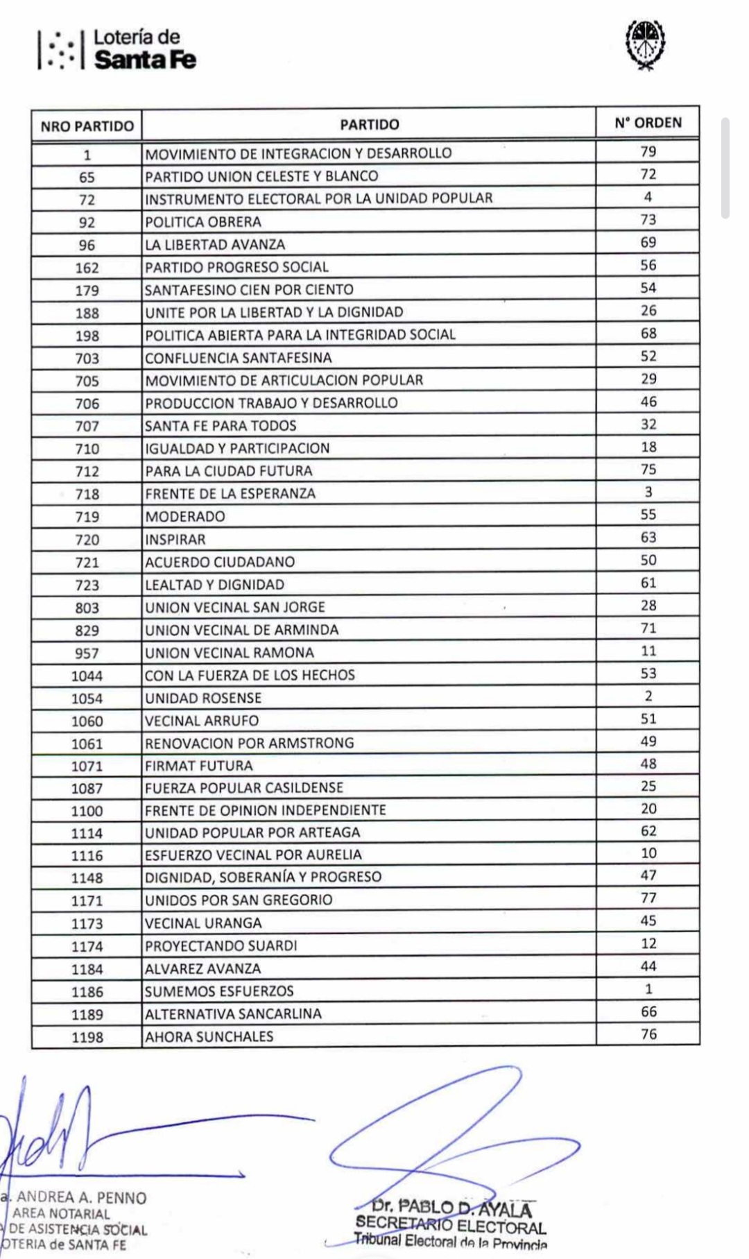 Elecciones Legislativas 2025: Ya se sorteó, el número de orden de las listas oficializadas. Facebook Twitter WhatsAppEn el día de la fecha, el Tribunal Electoral de Santa Fe, realizó en la Sede de Lotería, el sorteo televisado, del orden de los partidos y sus respectivas listas. Facebook Twitter WhatsApp