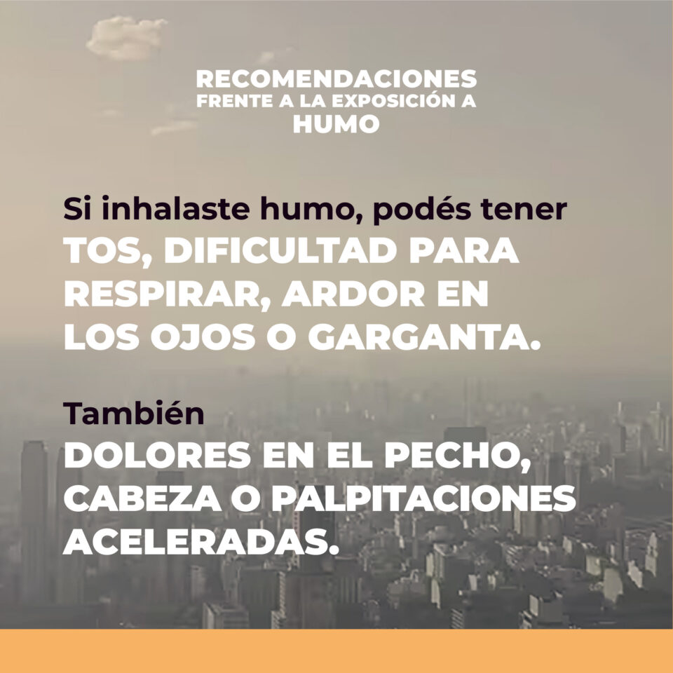 Ministerio de Salud: cómo afecta el humo a nuestra salud Facebook Twitter WhatsAppEl humo afecta más a las personas mayores, niños, embarazadas y personas con afecciones respiratorias y cardíacas. Ante cualquier duda, podés acercarte al centro de salud más cercano. Facebook Twitter WhatsApp